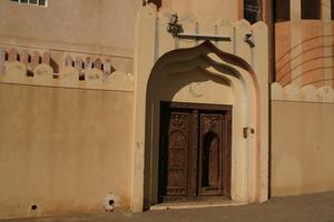 Obwohl es im Oman eigentlich kein Holz gibt sind sehr viele alte Häuser für ihre prächtig geschnitzten Holztüren berühmt. Oft in den kleinen Oasendörfern, wo die Lehmhäuser völlig unscheinbar aussehen, gibt's dann diese tollen Türen. Anscheinend wurden sie schon vor Jahrhunderten mit Schiffen aus Sansibar oder anderen Ländern eingeführt und dann auf Karawanen bis in die Wüste gebracht.