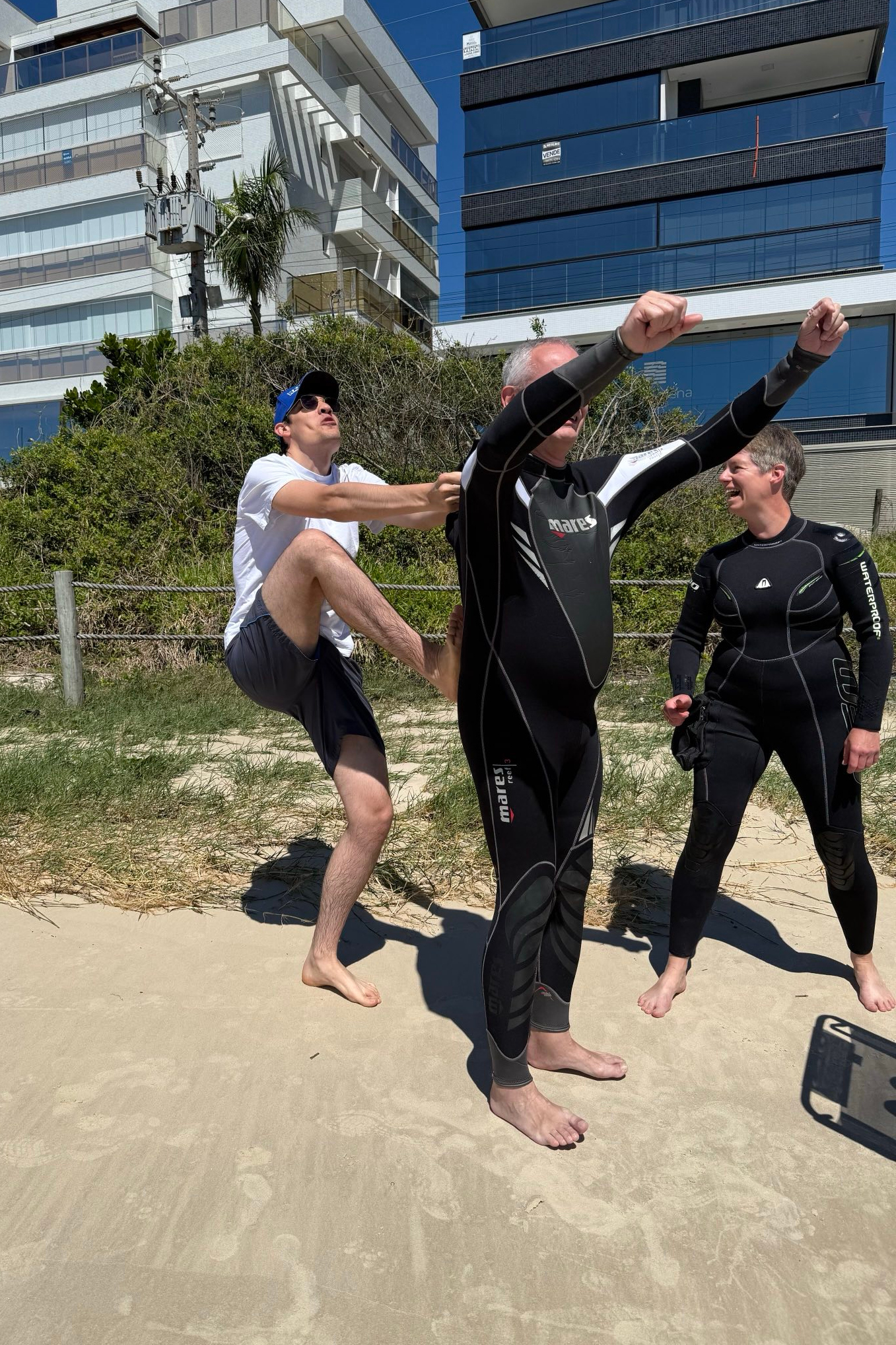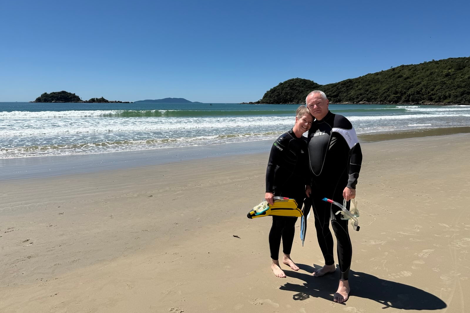 Da erst seit drei Tagen Frühling ist, ist es noch ziemlich kühl, sowohl die Luft als auch das Wasser. Zum Baden geht es gut, 20 Grad Wassertemperatur reichen uns, aber zum Schnorcheln wäre es ohne Neopren doch zu kalt. Also mussten wir uns in unsere Anzüge, die wir vor vielen Jahren mit einigen Kilos weniger gekauft haben, reinquetschen...nur um dann festzustellen, dass Schnorcheln hier überhaupt nicht geht. Es hatte am Vortag stark geregnet, und das Wasser war trüb wie ein Eimer Milch. Wir sind echt weit geschwommen, um auch weiter draußen zu gucken, ob es besser wird, aber keine Chance. Abgesehen davon waren sowohl Strand als auch Wasser seltsam steril, keine Anzeichen von Leben, keine Tiere, keine Pflanzen. Warum? Keine Ahnung. Sehr schade.