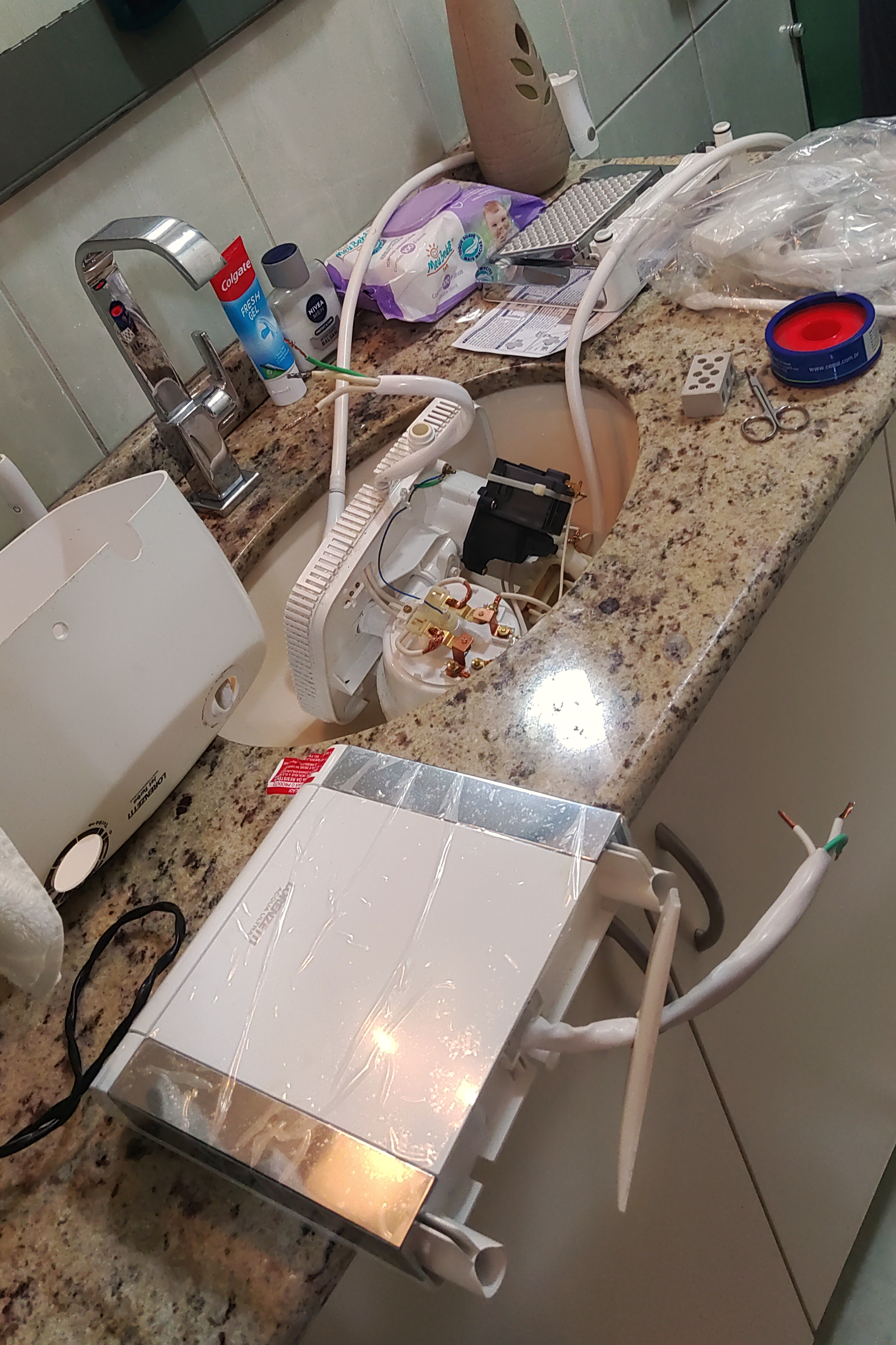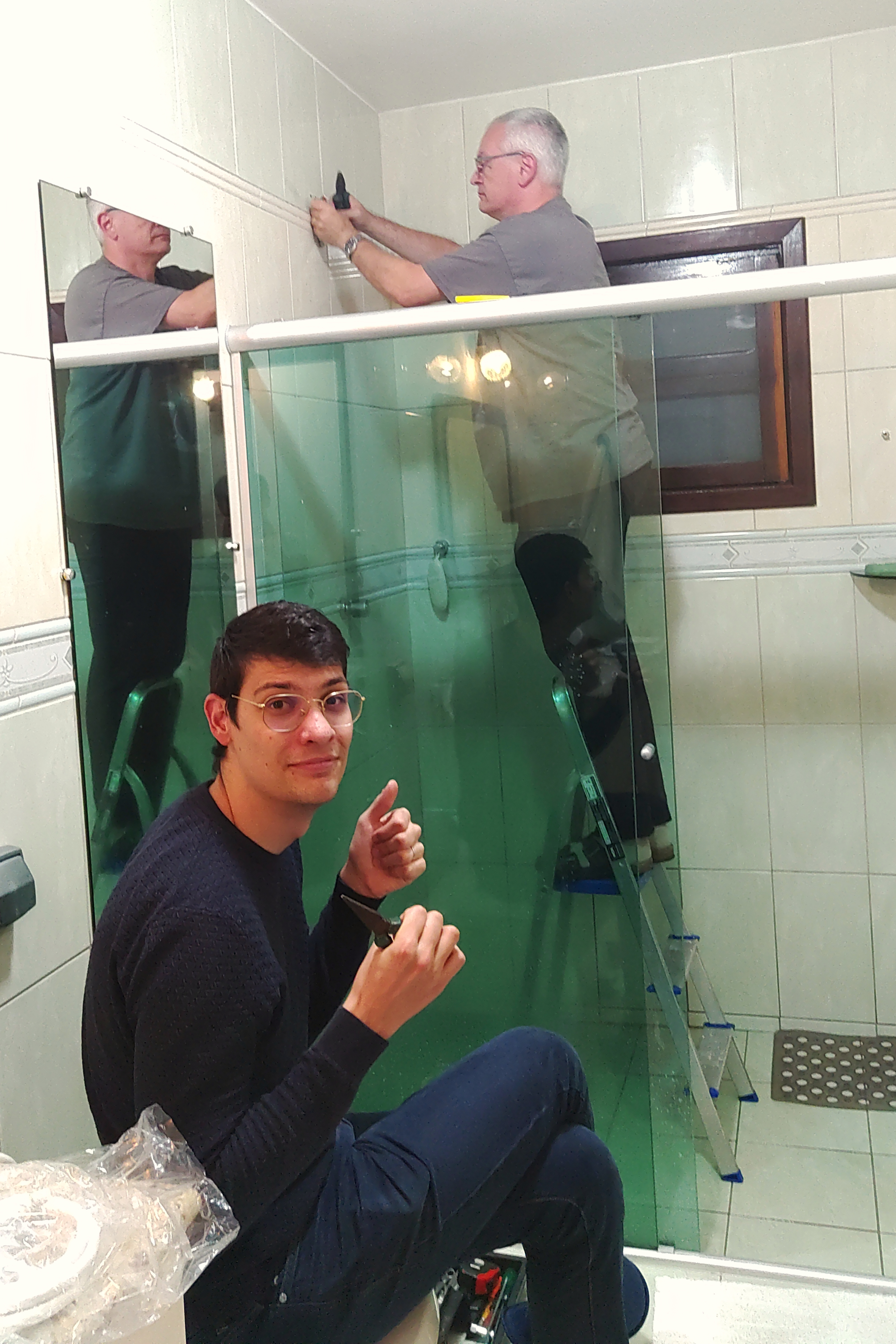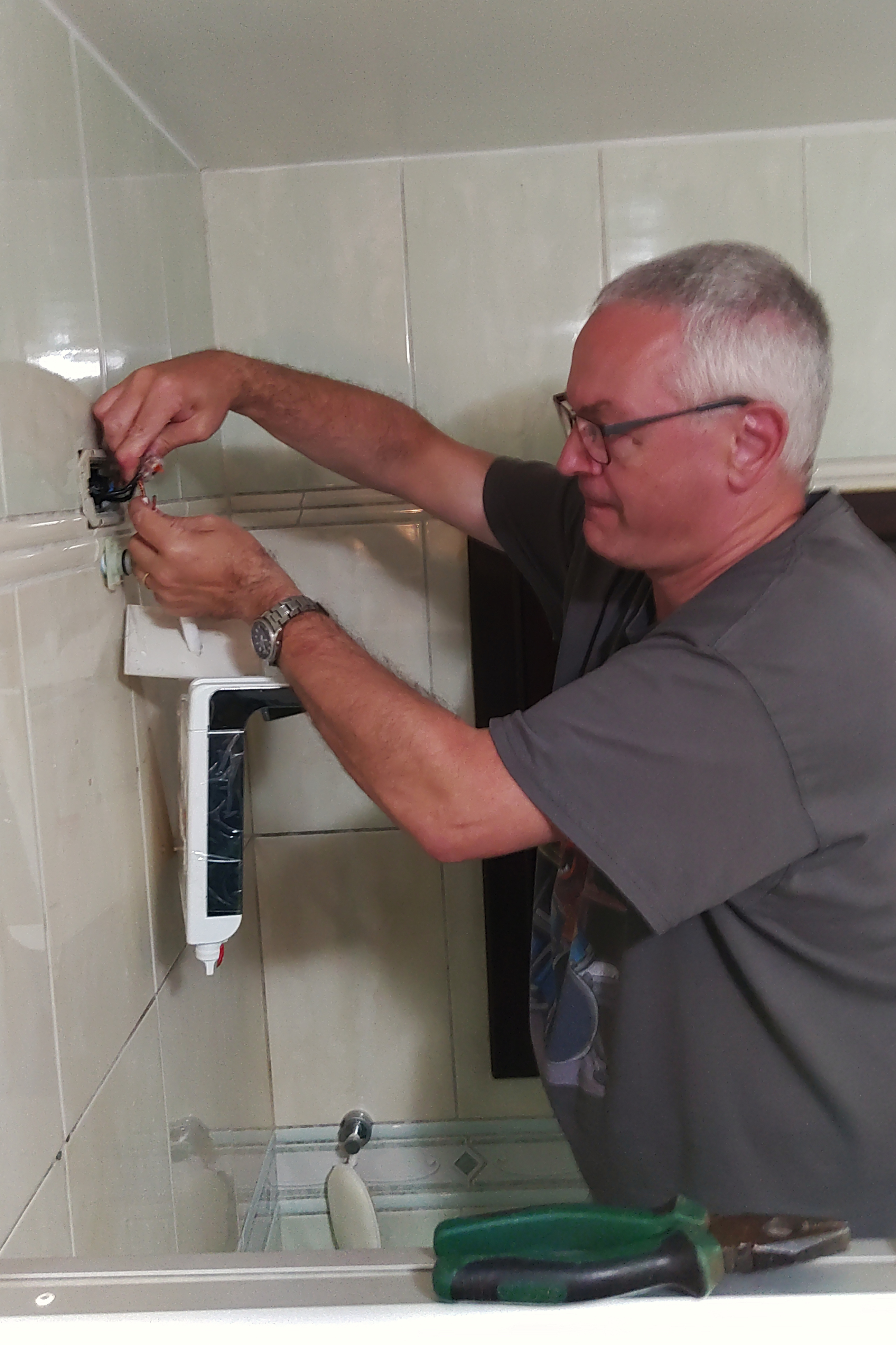 Beim letzten großen Gewitter war nicht nur der Strom die ganze Nacht aus, sondern unsere Dusche ist auch durchgebrannt, und dann gab's nur noch eiskaltes Wasser. Ellens Mutter hat eine neue gekauft, und wir haben die Challenge angenommen, sie zu montieren. Das schwierigste war eigentlich, die alte abzukriegen, dazu musste man sie komplett zerlegen. Die neue war zwar nicht auf Anhieb dicht, aber das haben wir irgendwann auch hingekriegt, und jetzt können wir richtig schön duschen. Die Neue hat sogar beides, Druck und Wärme... sonst muss man sich oft entscheiden, weil man die Temperatur darüber regelt, wie weit man das Wasser aufdreht.