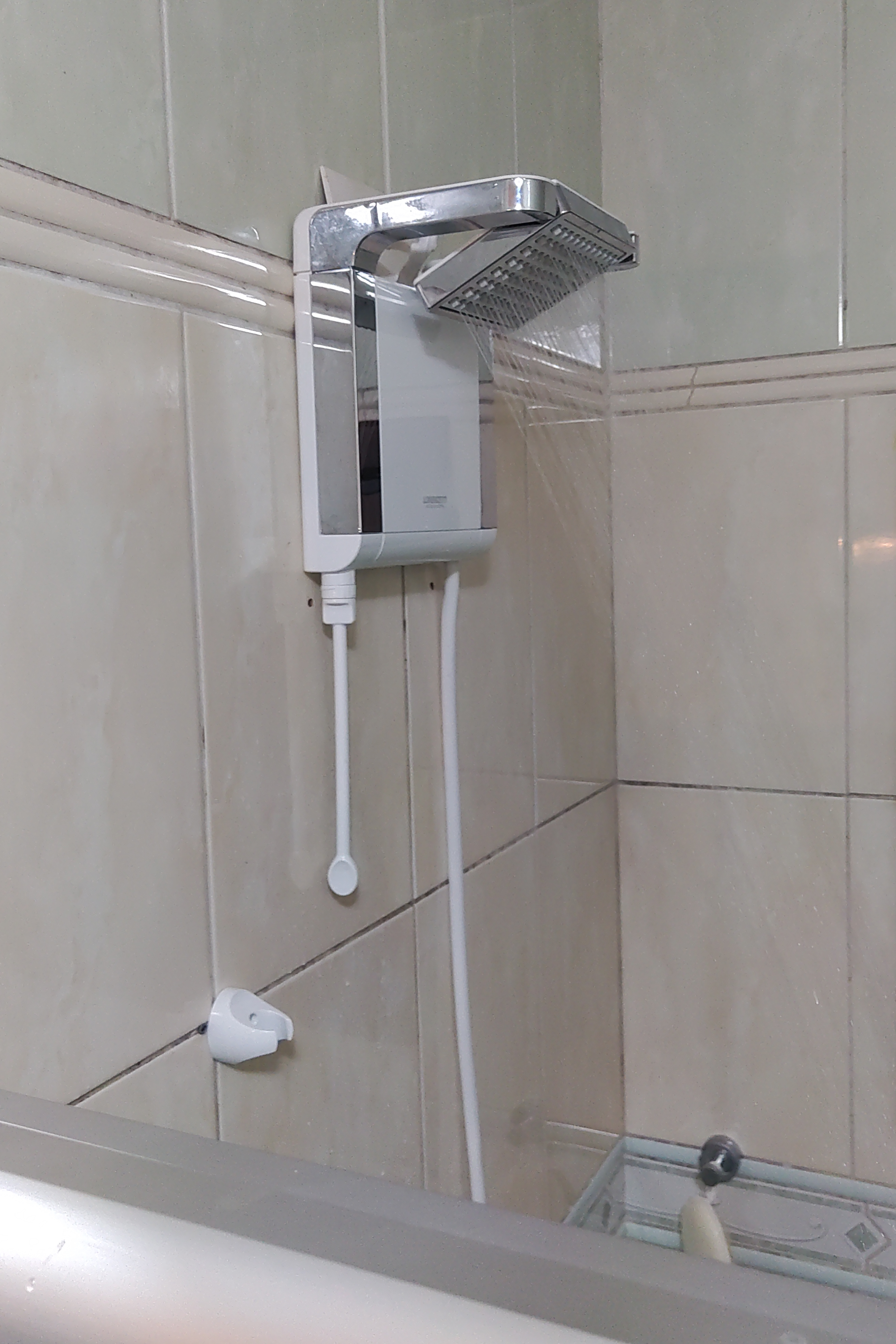 Ok, also im Moment ist alles wieder gut, mit Strom funktioniert auch das Internet, die Klospülung und die Dusche. Dafür braucht man hier auch Strom, weil die Klospülung keinen Spülkasten hat, sondern eine Wasserpumpe, und die Duschen ja diese elektrischen Duschköpfe haben, die das Wasser warm machen.